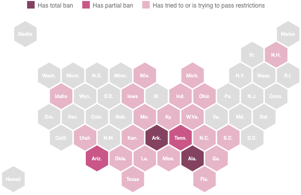 — *Restrictions in Florida and Texas were not the result of legislation. In Florida, gender-affirming care was effectively banned for new patients by the state’s medical board. In Texas, authorities have been directed to investigate parents and providers of gender-affirming care for child abuse.