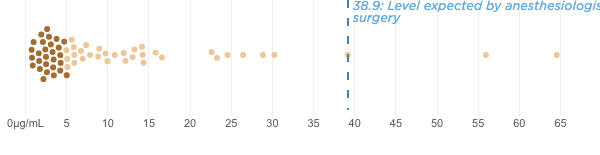 3 During surgeries, anesthesiologists using thiopental kept a patient's blood concentration at 38.9 µg/mL to ensure they were anesthetized. During executions, levels are not generally monitored as closely as they are during surgery, and inmates aren't given maintenance doses to keep them under.