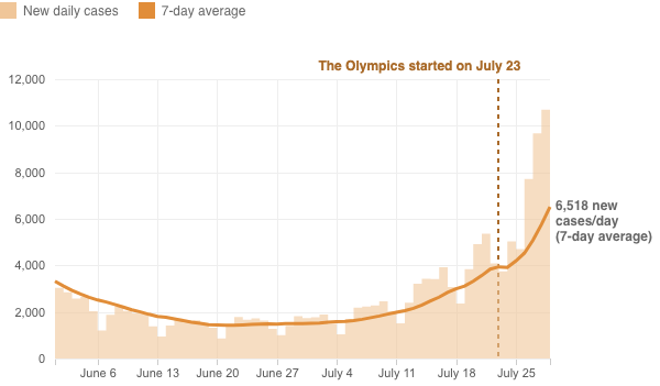 New COVID-19 Cases In Japan Have Spiked Since The Olympics
