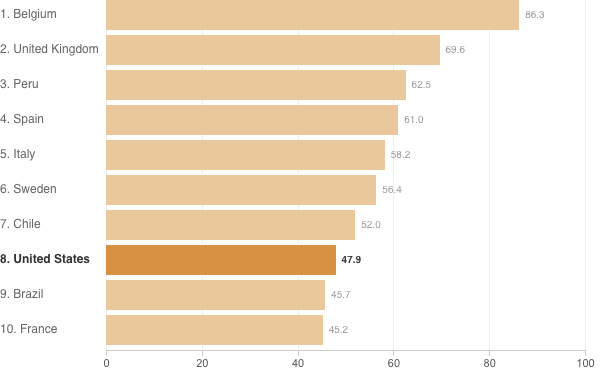 Among countries with 50,000 or more reported