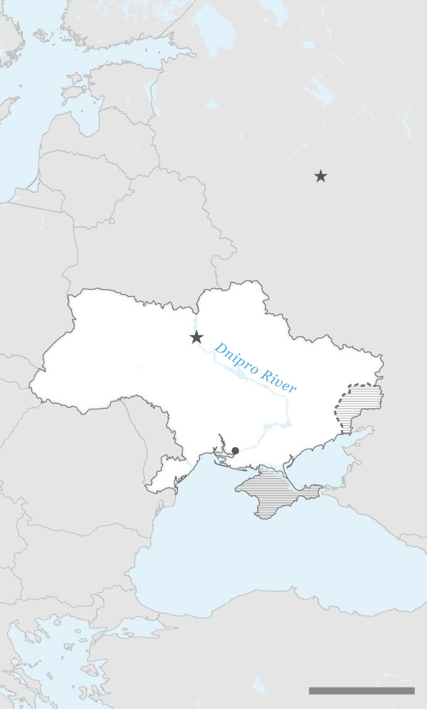 Notes: The area of separatist control is approximate and reflects the state of things before the Feb. 24, 2022, invasion.