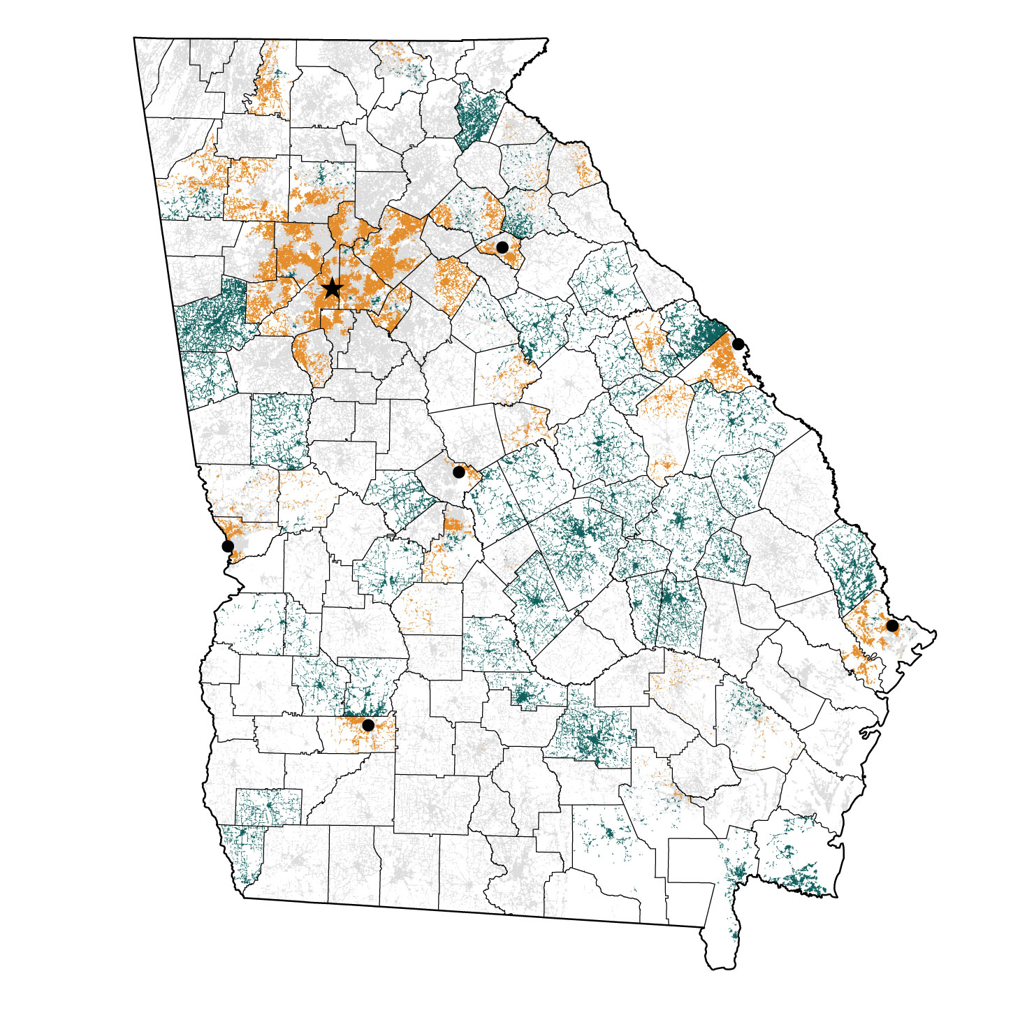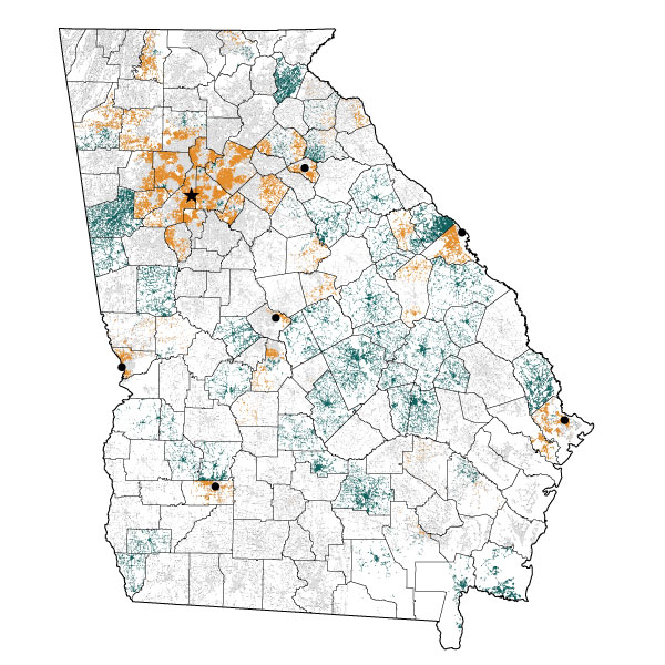The map below shows how voters’ travel time to a ballot drop box was affected by Senate Bill 202. About 1.9 million people, a quarter of the state’s voters, saw their travel time go up.