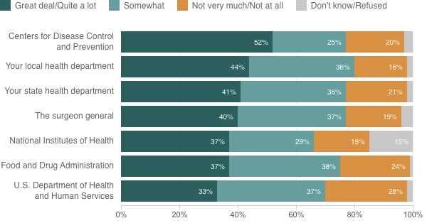 Respondents were asked, “In terms of recommendations made to improve health, how much do you trust the recommendations of each of the following