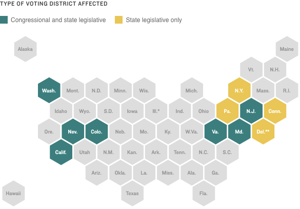 *Illinois has a reallocation rule that is set to go into effect in time for redistricting after the 2030 census.