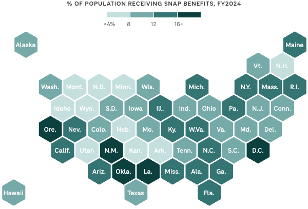 Nationally, 12.3% of people per month received SNAP benefits in fiscal year2024