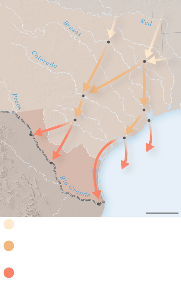 To reach Mexico, they journeyed across the treacherous Nueces Strip toward the Rio Grande; others crossed the Gulf and jumped ship in Mexican ports.