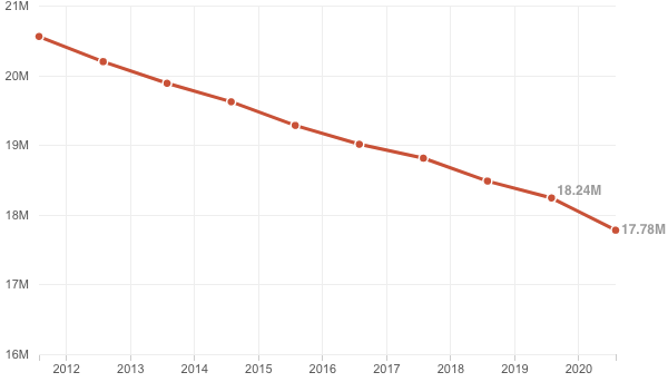 About 460,000 fewer students enrolled in U.S. colleges this fall than in fall