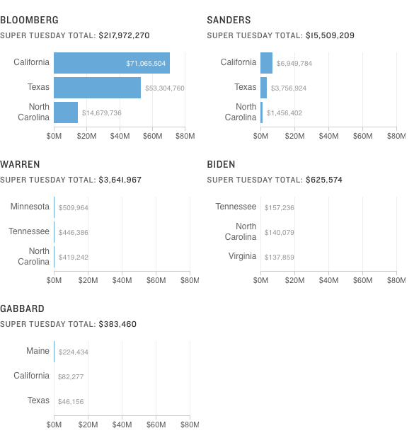 Where Are Candidates Spending The Most On Ads For Super Tuesday?