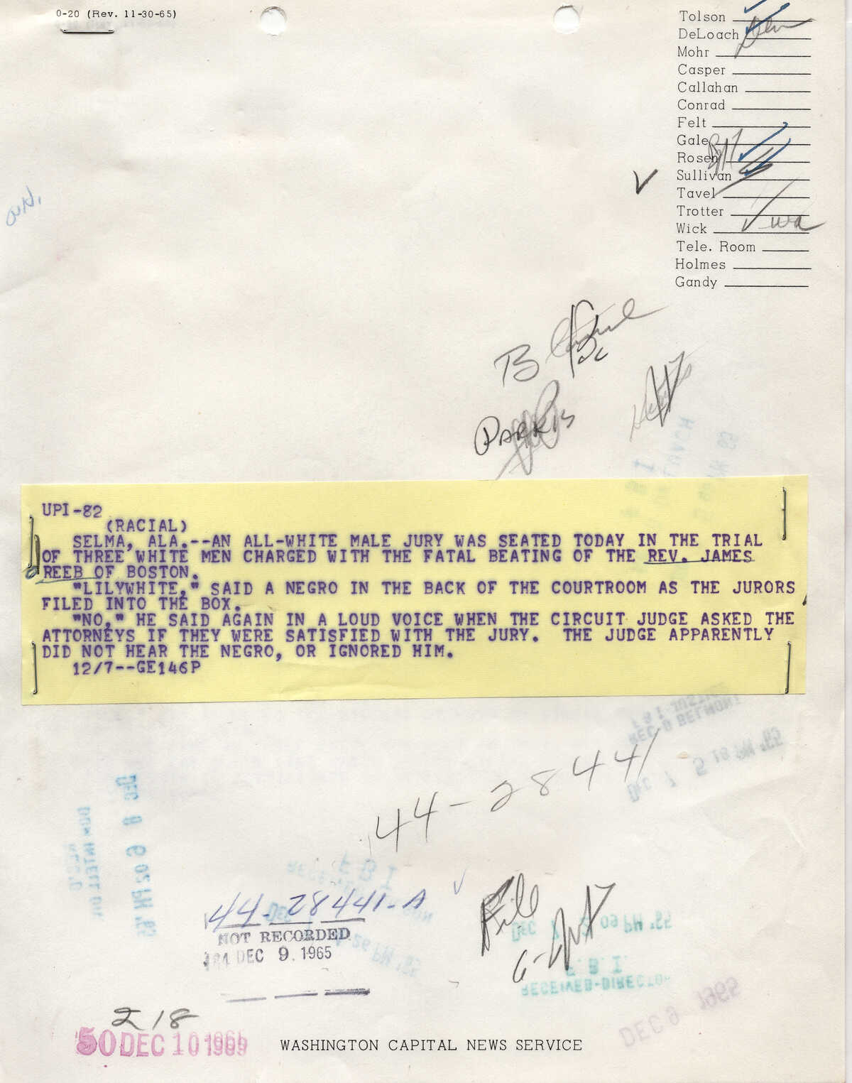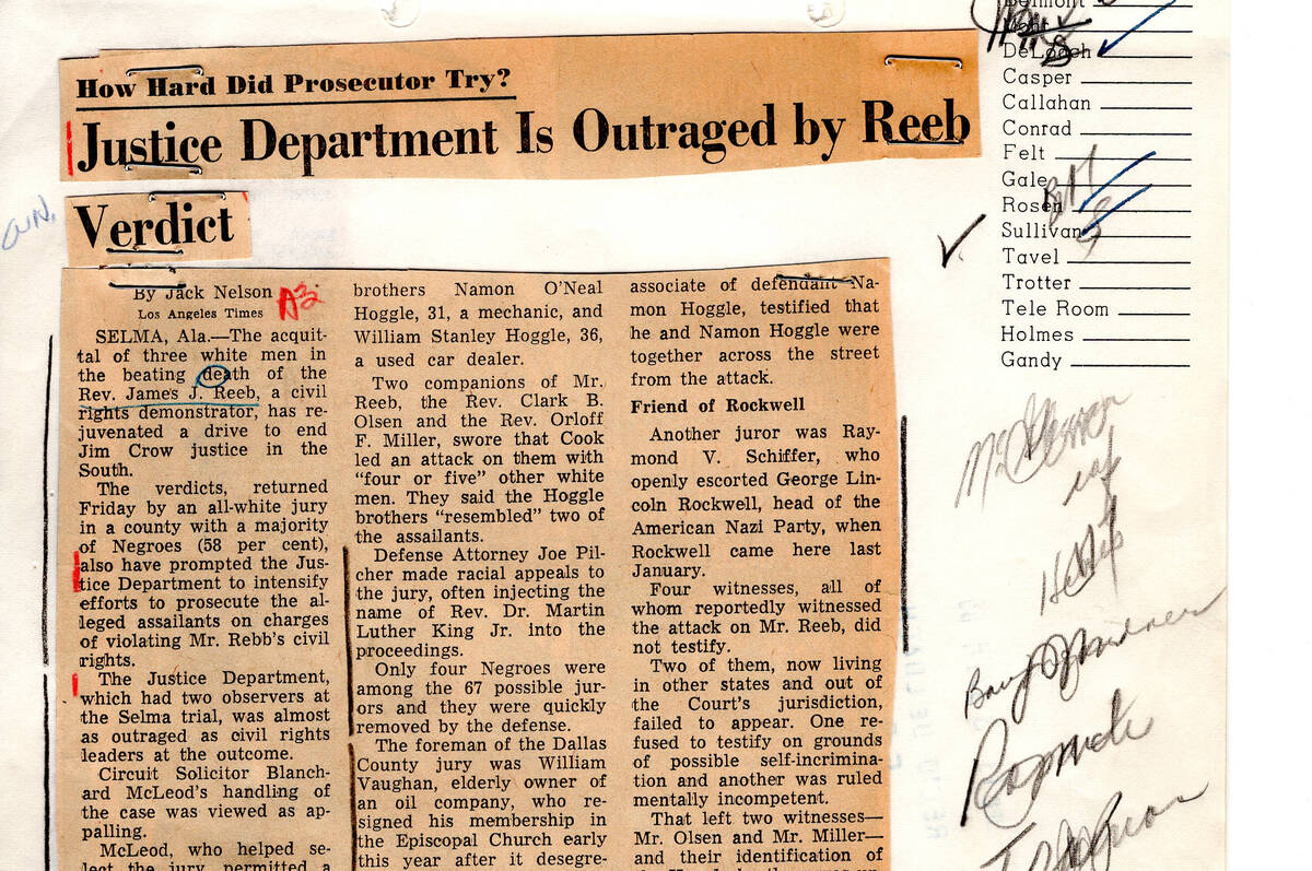 Elmer Cook, William Stanley Hoggle and Namon O’Neal Hoggle went on trial for Reeb’s murder in December 1965.